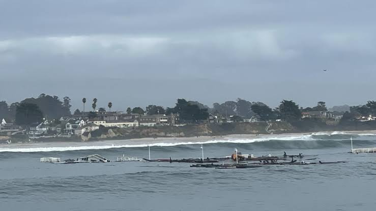 On December 23, 2024, a significant portion of the Santa Cruz Wharf in California collapsed into the Pacific Ocean due to high surf conditions. The incident occurred around 12:45 p.m. during a high surf warning issued by the National Weather Service, which predicted waves up to 60 feet along the central coast.